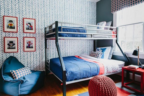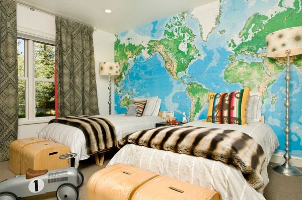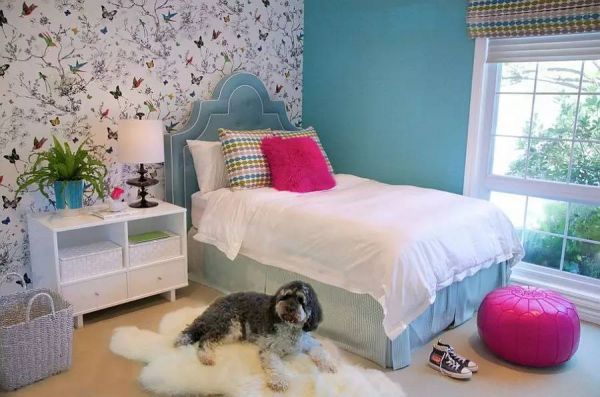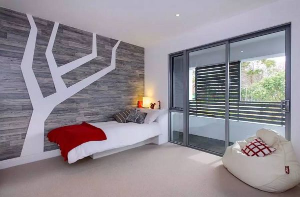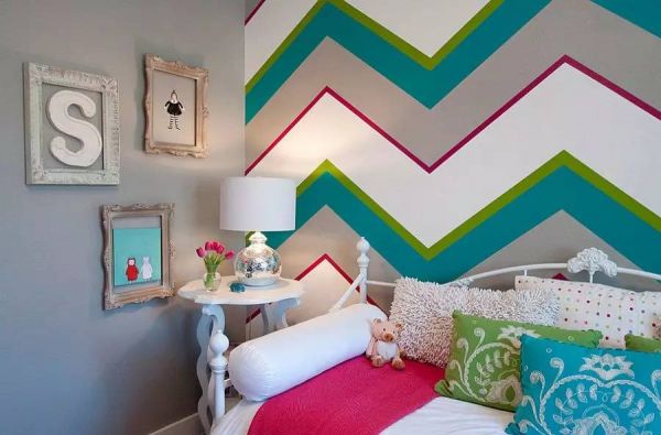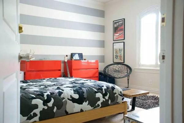 在孩子的卧室里,一面有特色的墙壁往往需要采取大胆的颜色选择,而不只是单调的灰色、 奶油、米色或白色,有趣的图案和丰富的想像力,随处散发嬉闹的元素。