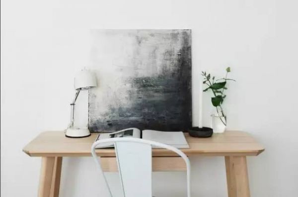 淡色木质餐桌,一副喜爱的挂画,简单的装饰却让工作区显得别有一番韵味。