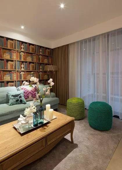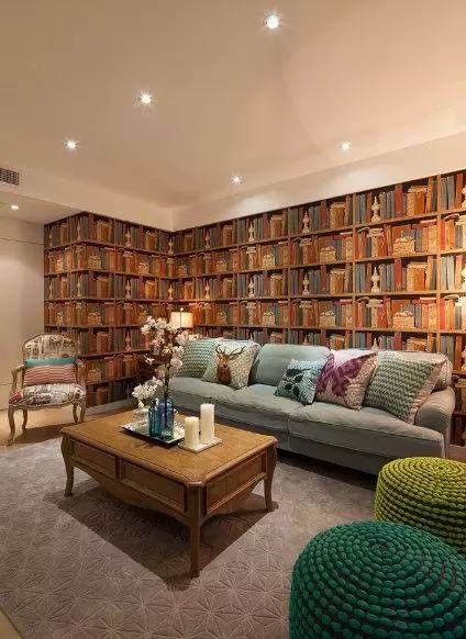 沙发的背景墙很有创意的设计师软装帮我们找了这种好像书柜一样的墙纸,是不是很有立体的感觉