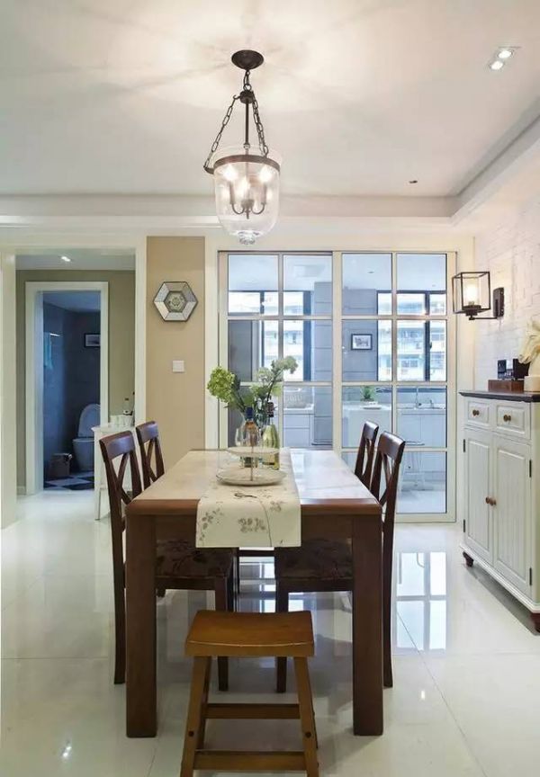 看到如此幸福甜蜜的一家人,设计师以春天为主题,健康的绿色碎花壁纸配上白色家具,风格定义为现代美式田园混搭,随处可见的绿植元素,生动而又井然有序。