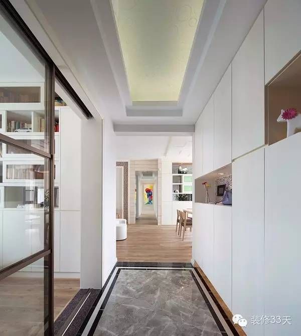▲ 进门玄关用石材铺地,左侧是书房,右侧是玄关柜