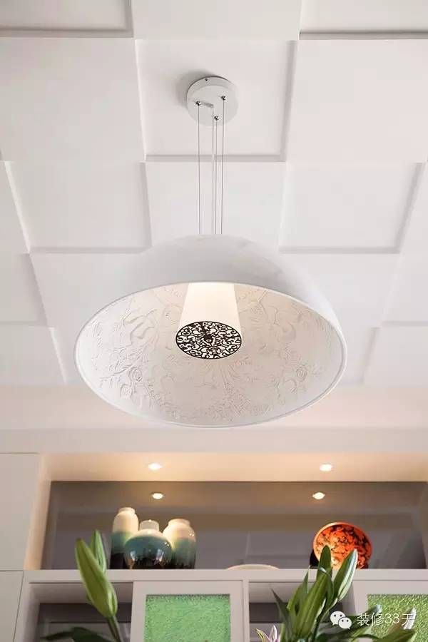 ▲ 独特造型的吊灯内部繁芜的花草纹设计,让光影在投射之间多了一些自然的韵味