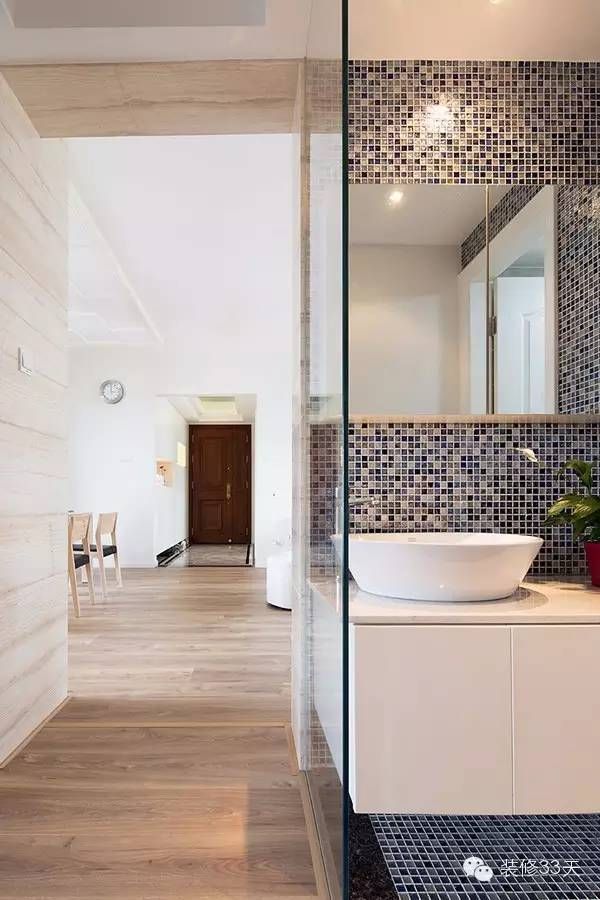 ▲ 次卫干湿分离,干区洗手台背景以及洗手台下底面用马赛克装饰
