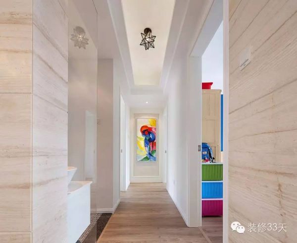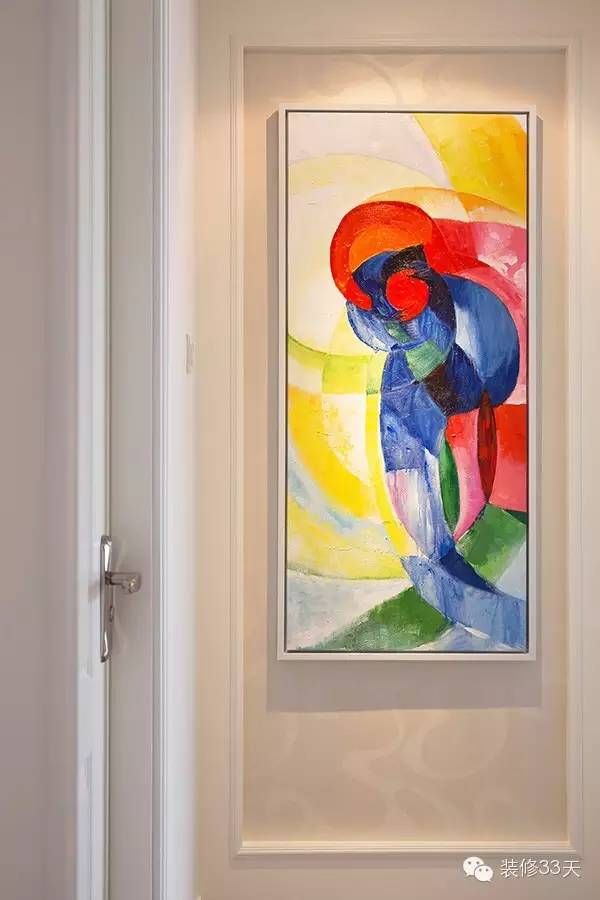 ▲ 走廊端景的彩色艺术画交融着现代时尚气息