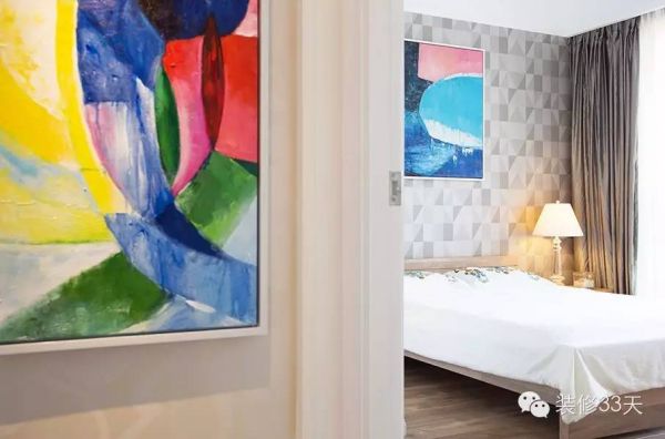 ▲ 主卧床头的抽象画和走廊遥相呼应