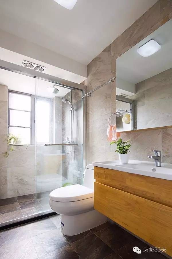 ▲ 主卫采用淋浴隔断和大镜柜,简单实用