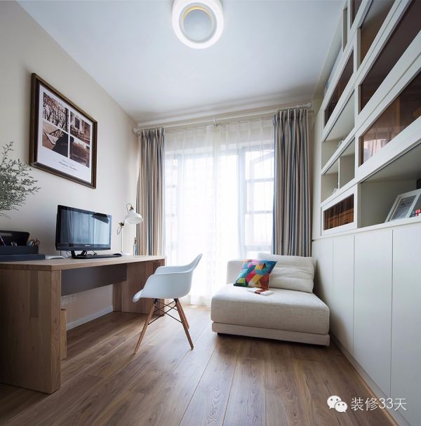 ▲ 书房舒适简洁,一张书桌,一张单人位沙发,可坐可躺