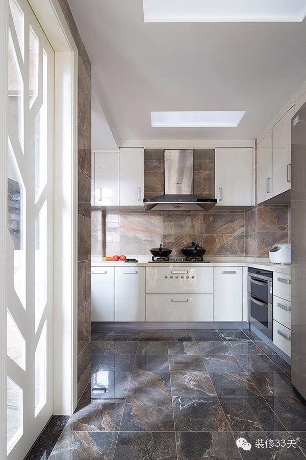 ▲ 厨房推拉门采用树形造型,融入自然元素,整个空间安排合理有序