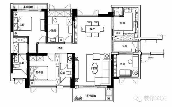 120平现代简约4室2厅 六口之家客厅超大还带飘窗