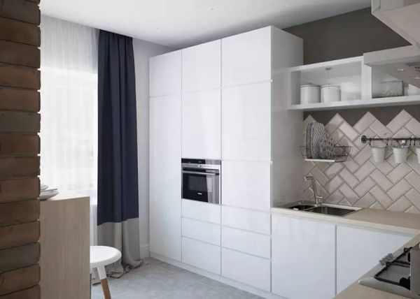 ▲厨房里的电器大多采用嵌入式,将橱柜也一并包容进来,白色的柜子使空间变得更加敞亮。