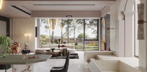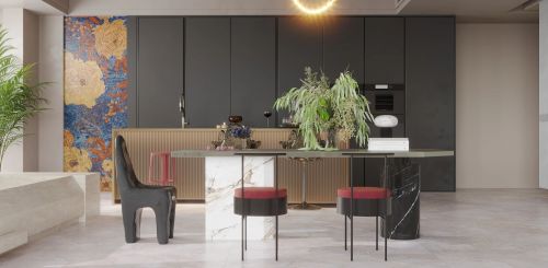 值得一提的是,餐厅地面与客厅一体延伸,同样采用了可可西里系列-巴尔颜。750x1500mm的大规格设计,进一步增强了空间的整体性与连贯性,在视觉上营造出大气开阔的非凡格调。