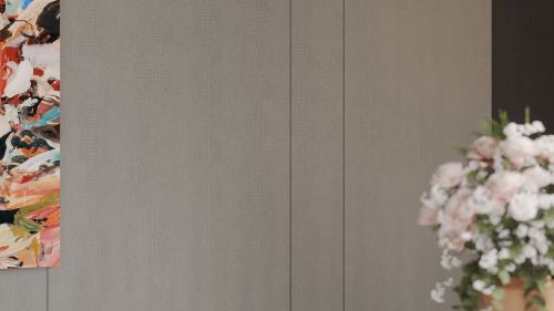 这款瓷砖匠心独运,采用了立体精雕模具工艺,细腻地雕琢出珍稀的鳄鱼皮纹效果,完美还原了皮纹特有的凹凸肌理与透气质感。无需过多繁复装饰,灰色哑光面与皮纹质感的巧妙结合,便营造出一种极简基调下的低调奢华氛围。