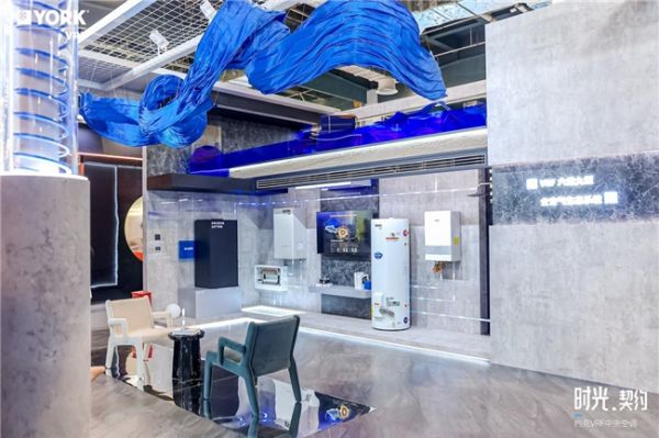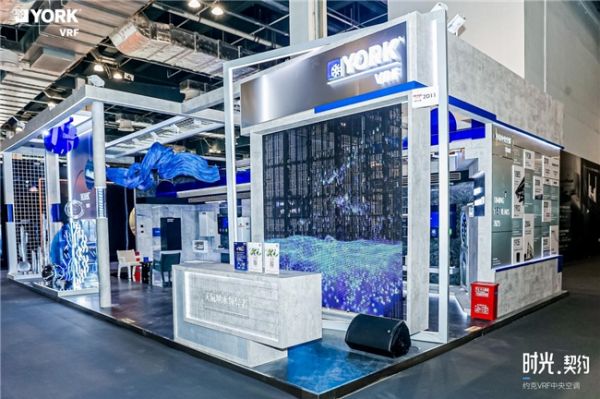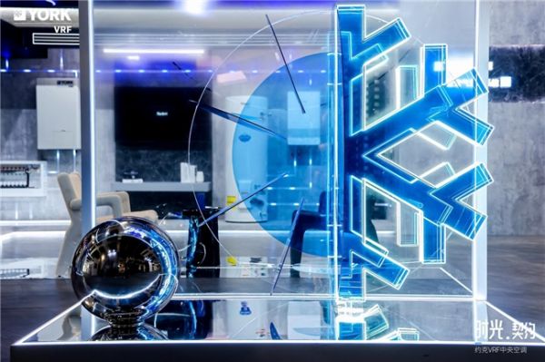 展区入口处,一尊由铜管与齿轮重构的机械装置赫然矗立,蒸汽时代的工业符号在数字化光影中苏醒。约克VRF以"轻工业设计"为笔触,将银灰金属质感与灵动科技蓝碰撞融合,既是对品牌151年历史的致敬,亦是对未来生活方式的预演。