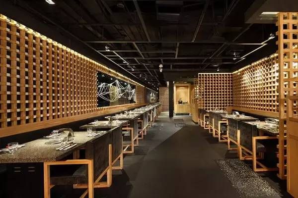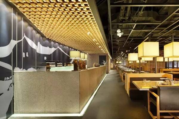 进入店内,你感觉到一股浓浓的木炭烧烤气息了吗?这是一家位于中国上海的日本烤肉店。木炭堆积而成的墙面环保且充满新意,木头打造的格子墙充满现代、自然气息。