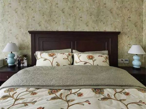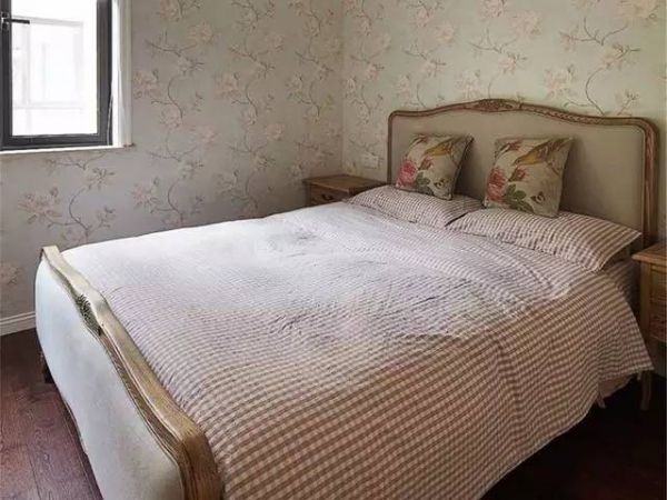 卧室用壁纸较为田园风,深浅搭配,让整体更温馨。