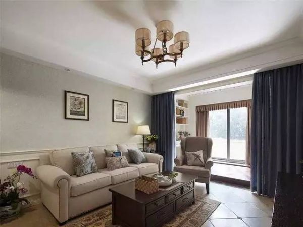 沙发和墙壁都用较浅的颜色,地砖也选择较为淡雅的。