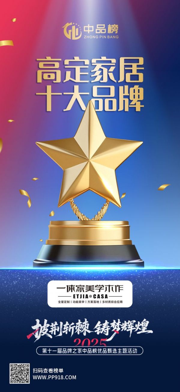 在2025年第十一届中品榜优品甄选活动中,一体家美学木作凭借在高端定制领域的卓越表现,正式入选“高定家居十大品牌”榜单。本次评选历经报名、投票、评审、公示四阶段严格筛选,依托品牌之家等权威平台流量优势,联合新浪家居、太平洋家居等主流媒体,以千万级曝光助力优秀品牌突围市场,为消费者提供权威选购指南,推动家居行业向绿色化、定制化方向转型。