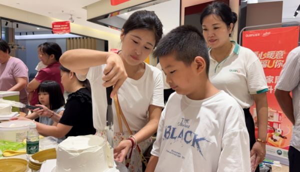 活动现场,全友罗田专卖店化身“甜蜜工坊”,专业烘焙师全程指导:从水果摆盘到色彩搭配的秘诀,每一步都充满趣味与惊喜。孩子们兴奋地挤奶油、撒糖珠,家长们则用手机记录下“小厨师”的专注模样,将这一个个美好的瞬间定格成永恒的记忆。不一会儿,一个个造型各异、充满童趣的蛋糕便在大家的共同努力下诞生了。