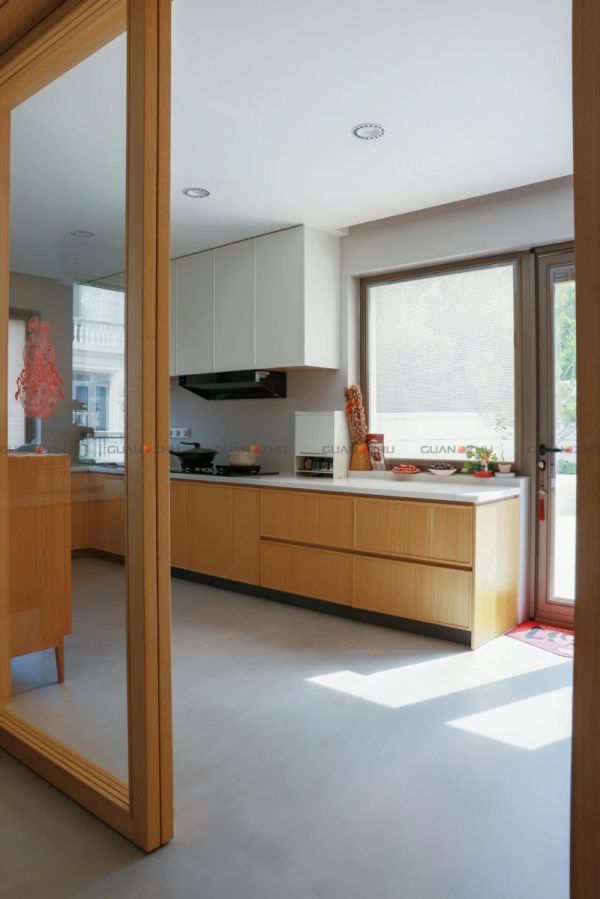 「冠珠岩板-西幕水泥-格拉尼特-奶白」有一种“原生质朴的高级感”,不仅是颜色跟我们家的木色橱柜特别搭,还特别好打理。