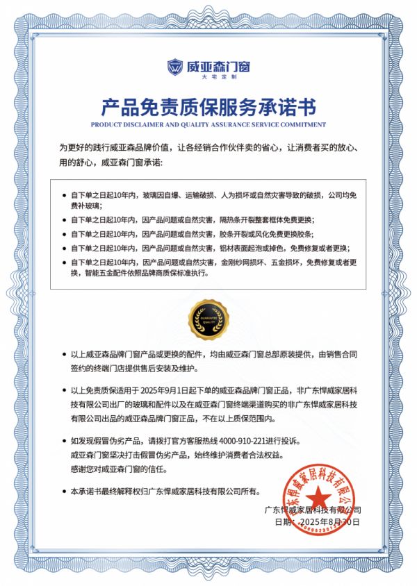 情感营销的高阶逻辑,在于“承诺与场景”的协同。威亚森门窗的十年免责质保体系,在高铁广告的加持下产生了奇妙的化学反应:35 亿人次的流量曝光,让 “十年保障” 变成了广为人知的情感承诺;而具体到玻璃、铝材的质保细节,又让这份承诺显得真实可触。用户看到的不仅是一个品牌 logo,更是 “愿意用十年时间陪伴家庭成长” 的责任感。这恰好击中了当下家居消费的核心诉求:47.2% 的消费者表示,选择高端门窗时情感信任比价格更重要。