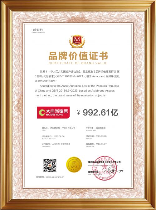 品牌价值992.61亿 !大自然家居连续8年问鼎亚洲品牌500强!