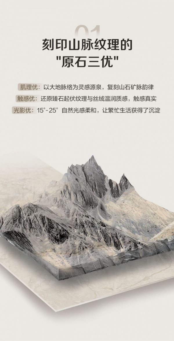 卡罗娜瓷砖天脉石工艺1:1复刻天然石材,光感柔和,触感细腻