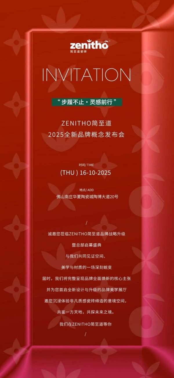 简至道将在佛山举办 「步履不止·灵感前行」——ZENITHO简·至道品牌战略升级暨总部启幕盛典。