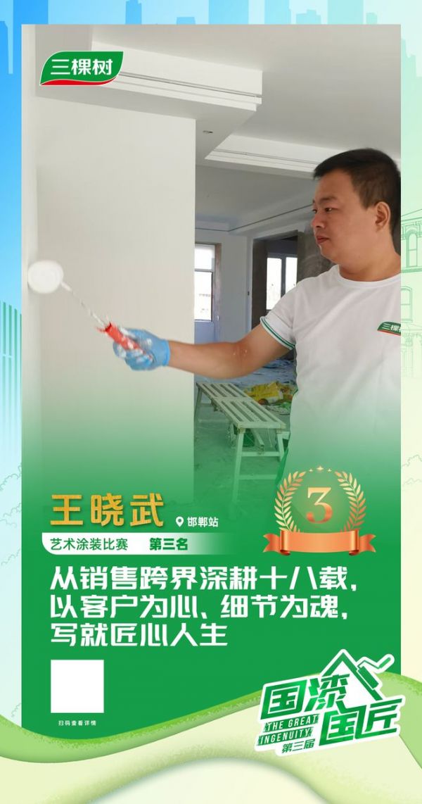 2025三棵树“国漆国匠”大赛邯郸站内墙涂装铜牌匠人王风亮:十二年坚守涂装,“细节控”雕琢自己的匠心传奇