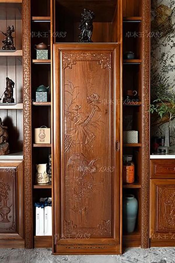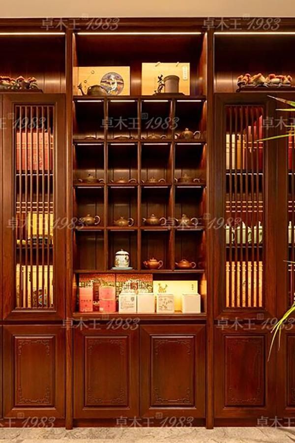 材质选用:大红酸枝茶台×缅甸柚木多宝阁