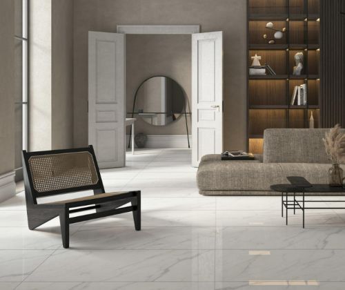 新中源瓷砖在设计创新上颇具亮点,其产品在纹理布局上更具艺术感。搭配极简家具或几何造型灯具时,能为空间注入强烈的视觉张力与个性态度。