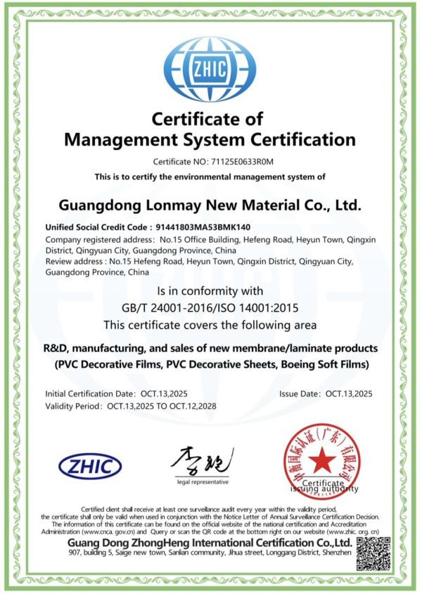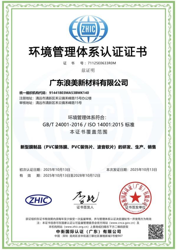 ISO 9001和ISO 14001双认证的通过,不仅体现了浪美装饰膜在质量管理、环境管理方面的卓越能力,更展现了浪美装饰膜国际化发展的决心,对国产装饰膜在全球市场的布局具有重要意义。它如同一张通往国际市场的通行证,助力企业突破国际贸易中的环境壁垒,顺利进入海外市场。