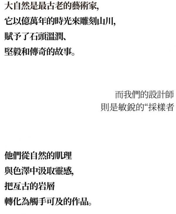 设计师亦是天生的“采样者”。大自然这座无尽的宝库,是我们取之不竭的创作源泉。从亚平宁半岛到青藏高原,每一块石头都跨越千里,带着它固有的风土和独特的故事。Copeland 的音乐启发我们反思:我们能否用这些大自然的馈赠,去创作出属于这个时代的赞歌?