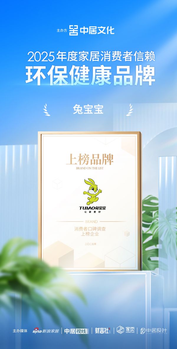 在本次评选中,兔宝宝凭借优越的产品质量、良好的消费者口碑,获得消费者和行业的高度认可,从上百家家居品牌脱颖而出,荣膺「2025年度家居消费者信赖销量领先品牌」、「2025年度家居消费者信赖环保健康品牌」称号。