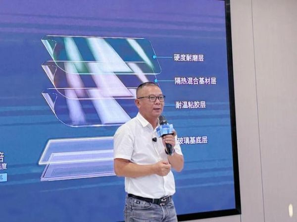 随后,膜先生光电科技董事长王浩杰向每位同行人的鼎力支持和长期陪伴表示感谢,并详细介绍了6FSG安全玻璃的技术初心与核心亮点,展现了其在抗冲击、防爆裂等方面的突破性优势。