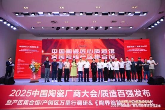 10月19日,以“新国标来了!到底该怎么走?”为主题的2025中国瓷砖厂商大会于广东佛山隆重举办,同时重磅公布了2025年中国陶瓷质造百强的名单。