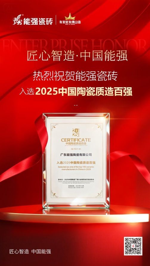 实力上榜 再获殊荣丨能强瓷砖入选“2025中国陶瓷质造百强”!