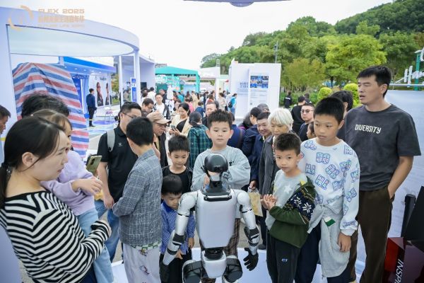今年,可萌可刚的“大王”又出现了。在2025杭州未来生活嘉年华现场,大王椰为观众打造了一个“未来的家”。穿着红色工装背带裤的“大王”站在“家”门口热情地迎接着八方来客,“未来客厅”里有正在辛勤劳作的机器人和活泼好动的机器狗。看到客人进门,它们会热情地打招呼,机器狗甚至会走下台阶表示欢迎,矫健灵敏的步伐让大家忍不住喝彩。