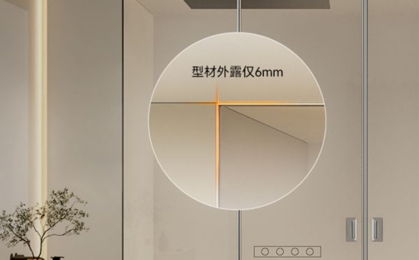 视线的简洁是实现空间无界感的关键。VH纯平淋浴房采用极窄不锈钢全包框,墙材嵌入预埋安装后外露仅6mm,让淋浴房在浴室中“隐”于无形,既弱化产品自身存在感,又强化空间整体统一性,营造通透开阔的视觉体验。