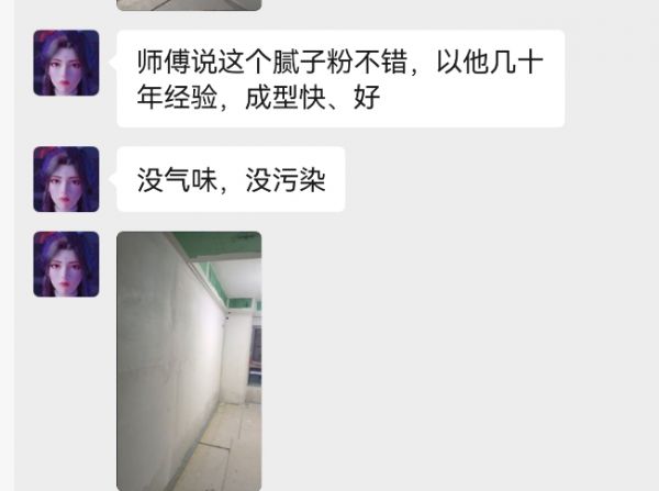 通过我购买卓玛腻子粉的业主,我做过一些调研,反馈都非常好,起初我还担心南方配方到北方是否适应,但发现辽宁、河北、江苏、湖南地区的业主,对产品评价非常高,腻子精白细腻,没有味道,很结实,硬度好,师傅也反馈批刮爽滑,打磨不脱壳不掉皮,师傅也很喜欢用,施工效率提升,没有客诉风险,光着膀子施工都没有问题,粉掉在身上没有刺激性,在施工现场吃饭、午睡都没问题,但一般的粉就不能这么干了。