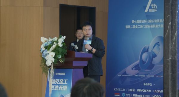 紧接着,门窗帮技术中心经理廖明川先生从专业角度进行了深入解读:"令我倍感振奋的是,现场有如此多的年轻师傅已经娴熟掌握了'密缝式节能安装'这项新技术。从外框定位到防水处理,从密封对接到细节收口,选手们展现出的专业素养,让我们对行业未来充满信心。