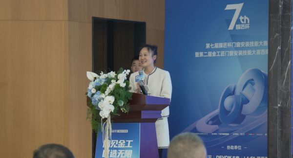 名人居门窗有限公司总裁刘佳丽女士以充满温度的视角分享:"我想请各位看看自己的双手——正是这双或许布满痕迹的手,守护着千家万户的风雨安宁,定义着门窗行业的品质底线。今天,我们不仅要为技艺喝彩,更要向这双承载着安全与承诺的手,致以最崇高的敬意。"
