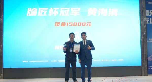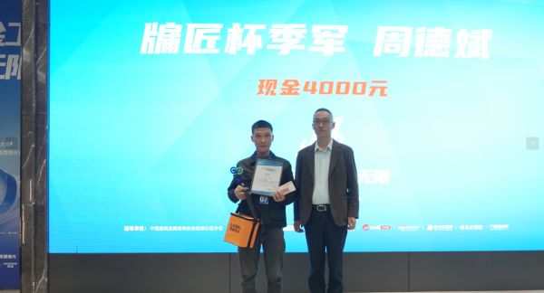 冠军选手将获得15000元的现金奖励以及荣誉证书。希美克中南区销售总经理李俊达先生上台为冠军选手颁奖。