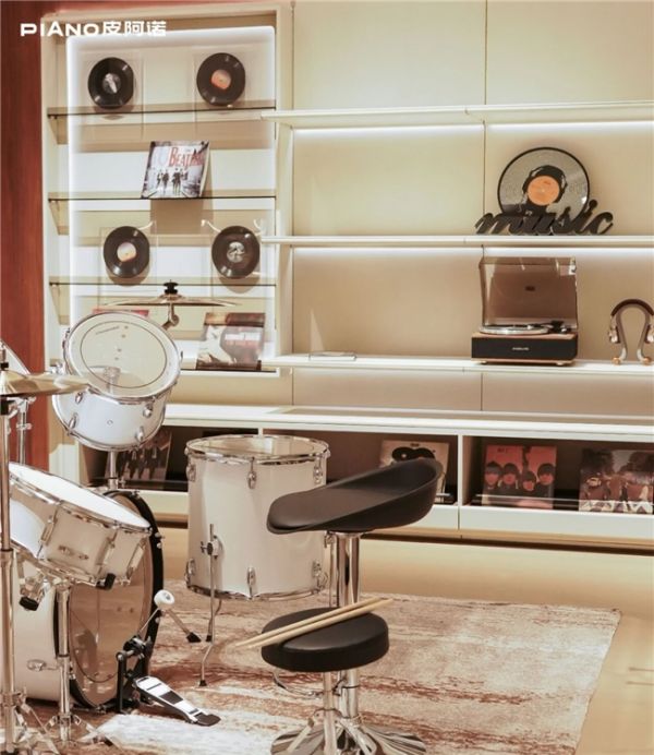 针对黑胶唱片爱好者,皮阿诺设计师为其打造定制化黑胶收纳模块:有序的存放格可分类收纳各类专辑,避免唱片杂乱堆积。圆弧边缘工艺细致防磕碰,妥善护持珍贵的唱片与播放乐器。展示型设计还能将收藏的经典唱片作为空间装饰,闲暇时取出唱片、放上唱针,旋律在简奢空间中流淌,瞬间营造出独属于自己的 “音乐松弛时刻”。