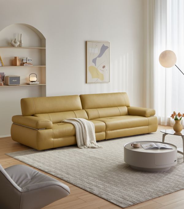 明亮蜂蜜黄调,个性吸睛,放在C位点亮空间活力。进口头层黄牛皮,纹理清晰,触感细腻。上靠包柔弹支撑头颈,下靠包贴合腰背曲线。上靠包支持7档角度调节,适应不同身高的家庭成员,实现沉浸式放松。三层恒压高弹海绵填充,温柔包裹身体,缓释压力,尽享悠闲时光。