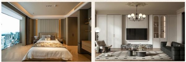 本次秋季新品有隐奢、卢瓦尔、屿你、睿构等多款整家定制系列产品,用设计语言将“家”的温度与个性融入每一处细节。隐奢系列,作为高端整木定制力作,采用水性油漆与天然木皮工艺,以大圆弧造型、严谨收口细节,重新定义“隐于形,显于质”的定制哲学;卢瓦尔系列,以轻法复古风勾勒生活的浪漫轮廓,灵感源自法国古堡建筑,融合雕花线条、油砂玻璃与仿纯色墙面纹理,再现法式优雅;屿你系列,专注现代奶油风的温暖表达,通过静电喷粉工艺门板、火山石纹花色,以及圆弧设计,营造安全、灵动且充满想象的空间;而睿构系列,以模块化设计回应自由职业者的个性主张,隐藏拉手、亚马逊绿石纹背板、旋转包柜与抽拉台面等,打破传统定制的边界,让收纳与颜值并存。