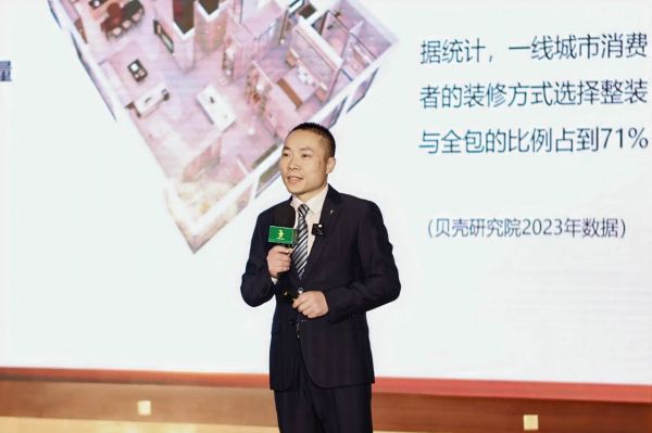 为进一步阐释“好房子”的构建逻辑,德华兔宝宝品牌建设中心副总监闻国涛以《以绿色科技寻找家的本质——兔宝宝打造全龄友好安全系统化好房子》为题发表演讲,介绍了兔宝宝依托超过30年的技术积累与环保研发底蕴,从材料、设计、功能等多维度专为改善型居住打造了高端实木系列产品。闻总还特别指出,兔宝宝参与建设的浙江“好房子”项目,从执行到落成仅用33天,充分彰显了品牌强大的交付能力,精准契合快节奏时代对高效品质居住的迫切需求。