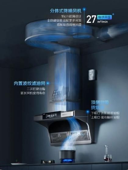 原来,创新分体式设计,将产生噪音的风机藏于吊顶,让噪音原理人耳,即使开到最大挡也依然十分安静。油烟机搭载的顶侧双吸结构*,更是开放式厨房的首选。底部吸口近距离捕捉油烟;顶部吸口,强劲抽排油烟。无论是重油煎烤还是猛火爆炒,只需要放心打开大挡,就能告别油烟散溢的困扰,更不用忍受噪音贯耳更绝的是,瀞油烟机还能“自我介绍”:“油烟机达到一级静音认证,大风量也安静,爆炒挡也安静……有它在,油烟休想逃!”一台优秀的油烟机,不仅要能拓宽厨房空间的物理边界,更要让人与人、人与设备无界沟通,实现厨房全场景语音交互,厨房设备一屏全控,这不仅是安静和干净,更是一种被科技“撑腰”的从容,让厨房不再是轰鸣的战场,而是可以安静享受烹饪的治愈空间。