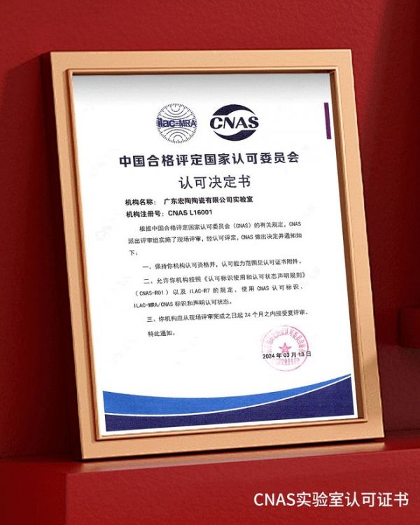 此外,宏陶瓷砖依托国家CNAS认证实验室,深度融合权威高校的产学研合作,系统化验证产品强度、耐磨、防滑、耐化学腐蚀等维度的性能,不仅为5A品质提供坚实的科学支撑,更持续推动宏陶产品创新与技术迭代。