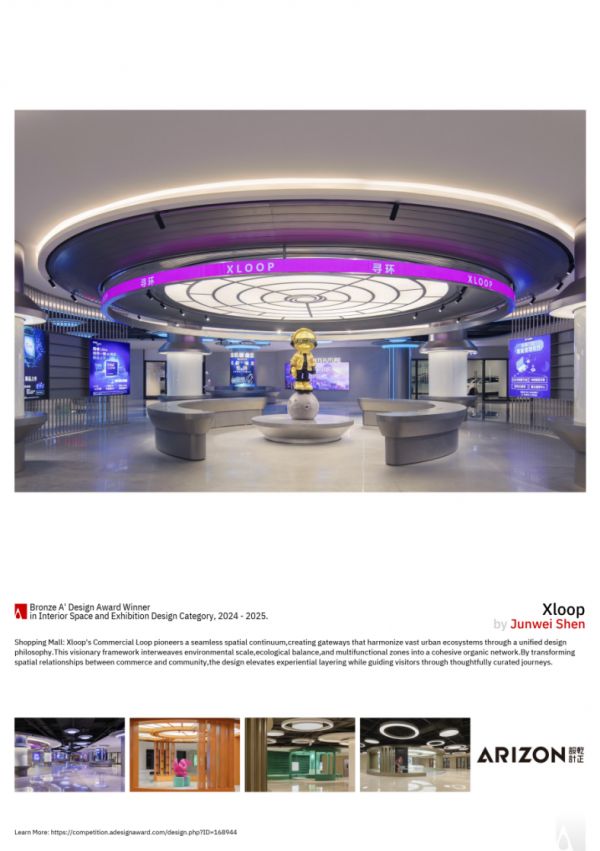 ARIZON乾正设计作品:龙湖苏州相城天街XIANGCHENG PARADISE WALK 、雄安商服中心_寻环XLOOP取得了一金、一铜的佳绩。