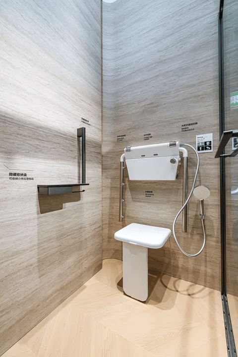 适老好房子展区展示的电动升降浴室柜支持自由调节高度,可实现台盆的升降,适配不同身形长者,无论是站立还是坐着洗漱,都能找到zui舒适的角度。智能健康护理一体机将智能马桶与智能护理相融合,搭载自研自创医疗级算法模块,通过AI数智科技,在如厕过程中就能进行14项尿检健康指标,精准生成检测报告与历史数据分析,帮助用户实现疾病早筛与日常健康检测管理。康养淋浴器可站可坐,有效避免老年人沐浴时久站眩晕、滑倒跌伤,两侧雾化喷淋臂360°喷淋,带来包裹式淋雨体验,还支持三档定位、恒温出水,洗浴过程舒适又安全。